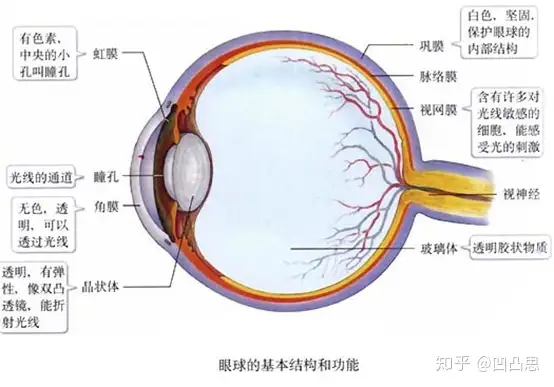 光路顺序:角膜–瞳孔–晶状体–玻璃体–视网膜